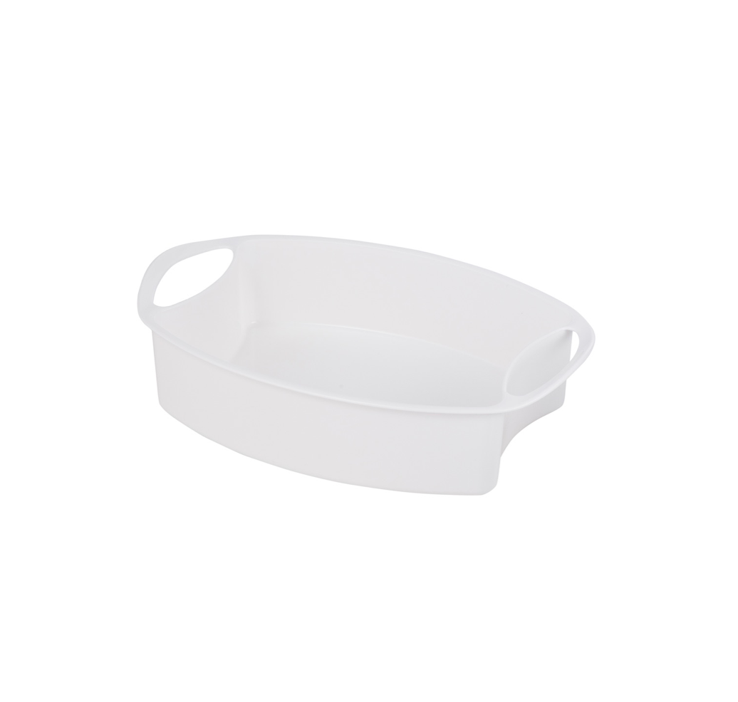 Farbe Weiß. Die Maße betragen 23 cm Länge, 15 cm Breite und 6 cm Hoch.
