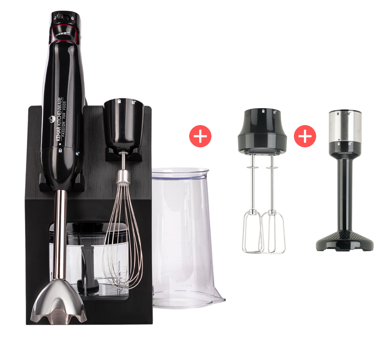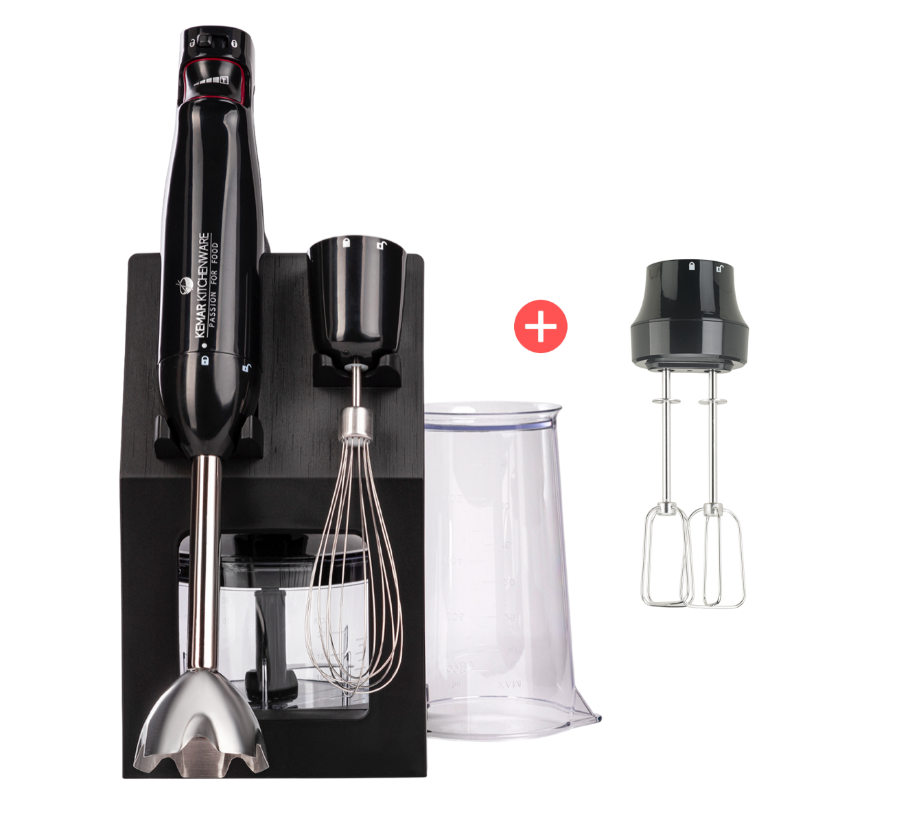 Ergänzt werden kann das Set durch einen optionalen Gemüse-/Kartoffelstampfer und eine optionalen Doppelquirl Aufsatz. Siehe Variantenauswahl.