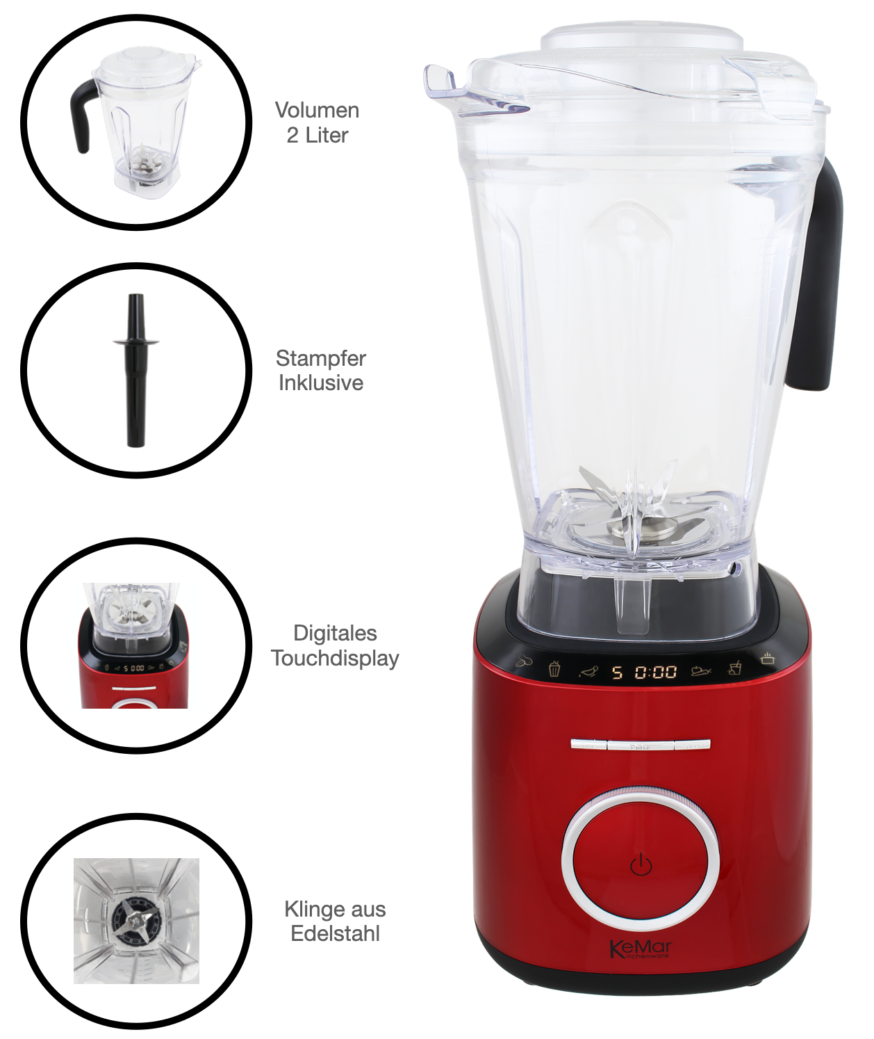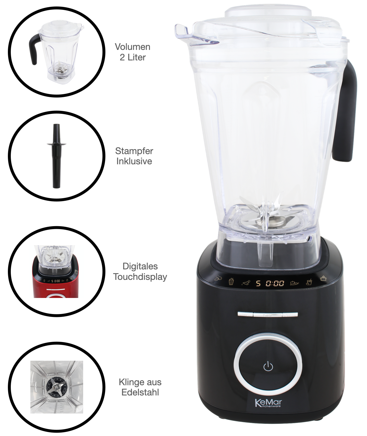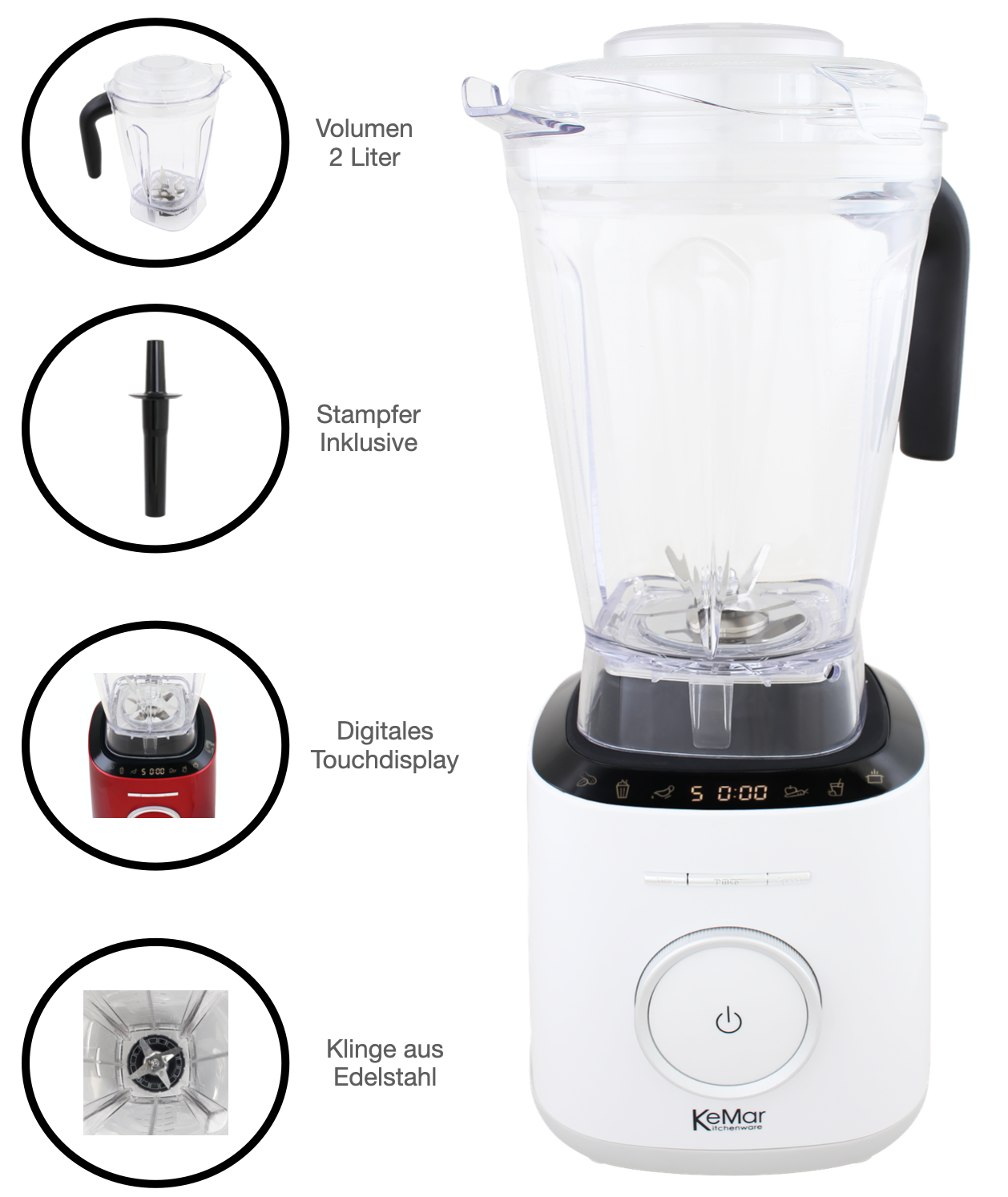 KeMar Kitchenware High Speed Standmixer mit LED Touch Bedienfeld | BPA-frei | 2 Liter Behälter | Smoothie Mixer | Standmixer | Hochleistungsmixer | 23.000 U/min | LED Touch Panel | 10 Geschwindigkeitsstufen | AGS gehärtete Stahlklingen | 2 Liter TRITAN® Behälter BPA-frei | Deckel transparent | Optimierte Behälter Symmetrie für perfekte Mixergebnisse | 6 Autoprogramme | Pulse - Reinigungsfunktion | Manuelle Zeit und Geschwindigkeitsanpassung