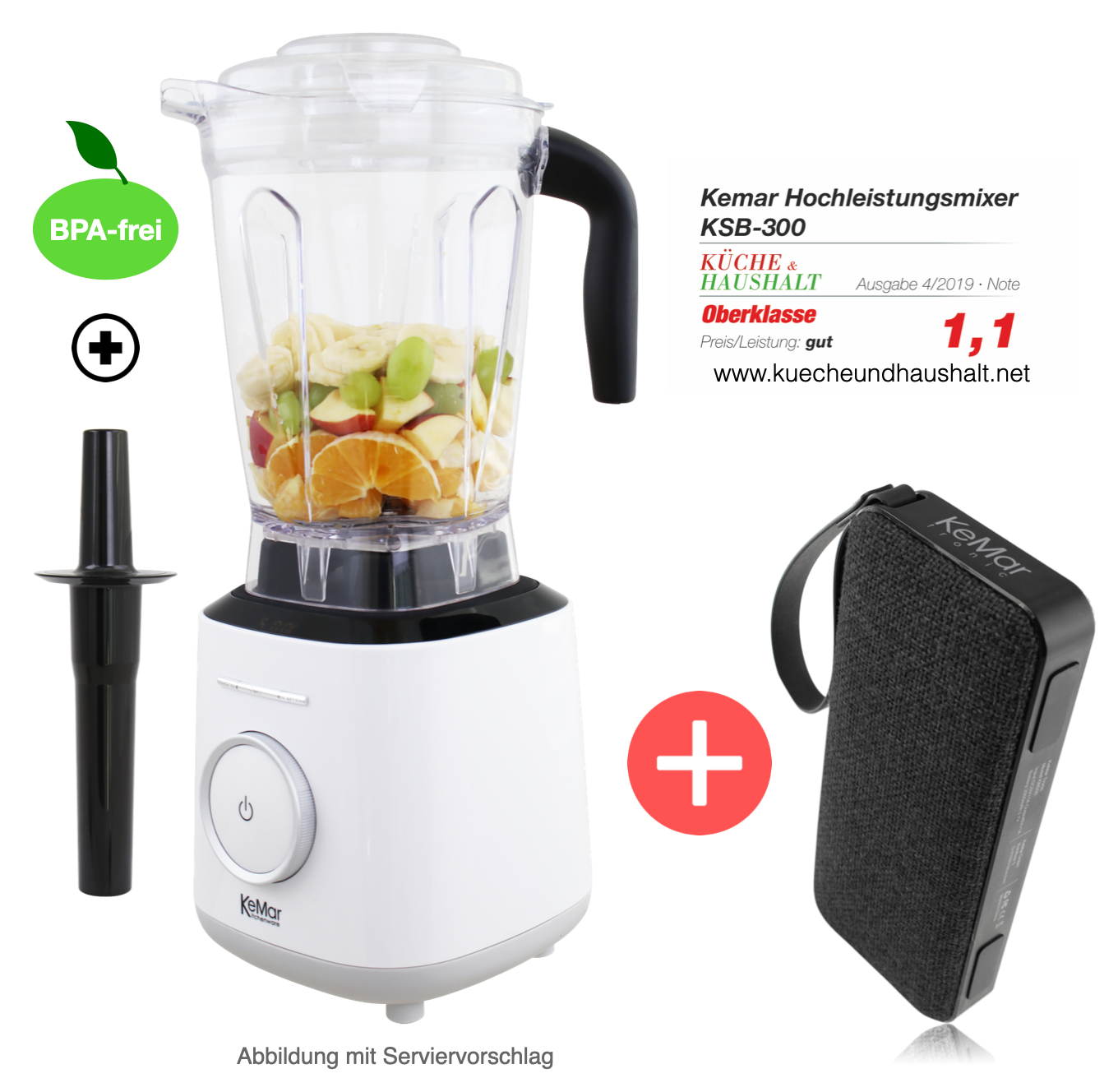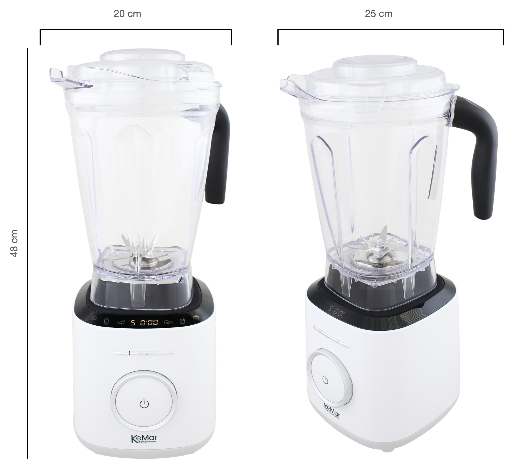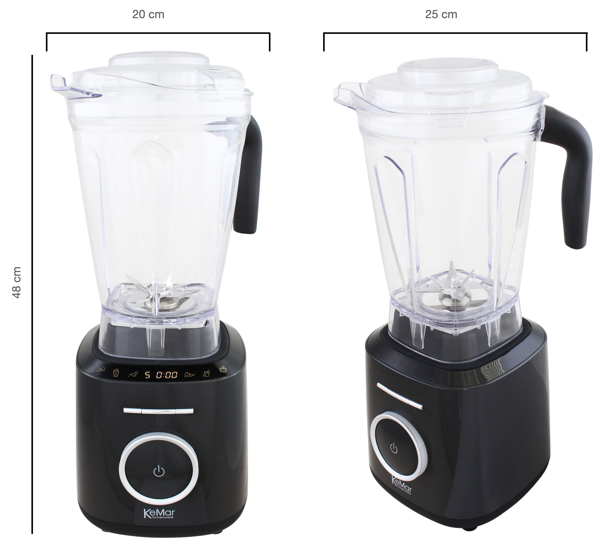 Der KeMar KSB-300 Hochleistungsmixer überzeugt mit einem leistungsstarken 2 PS-Motor, der dank seiner 1.500 Watt die Höchstdrehzahl von 23.000 U/min in kürzester Zeit erreicht. Durch die optimierte Behälter-Symmetrie benötigt der KSB-300 weniger Umdrehungen pro Minute für die gleichen Mixergebnisse bei weniger Kraft und Energieaufwand als ein Mixer mit 30.000 U/min.
