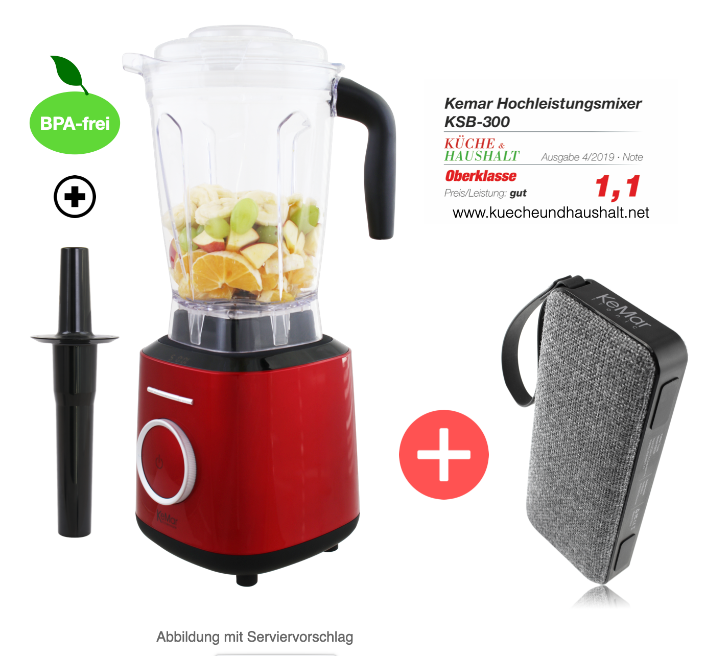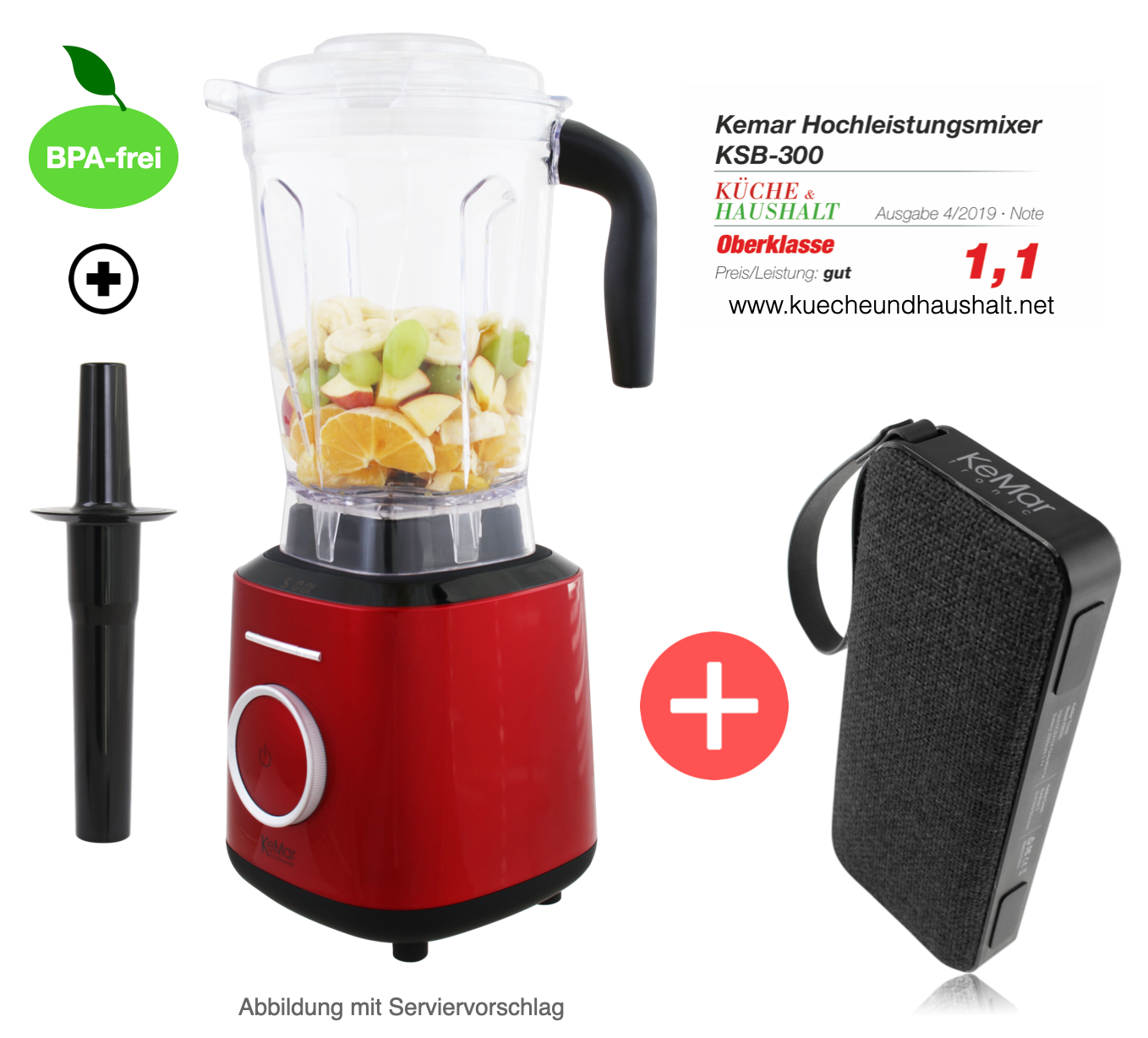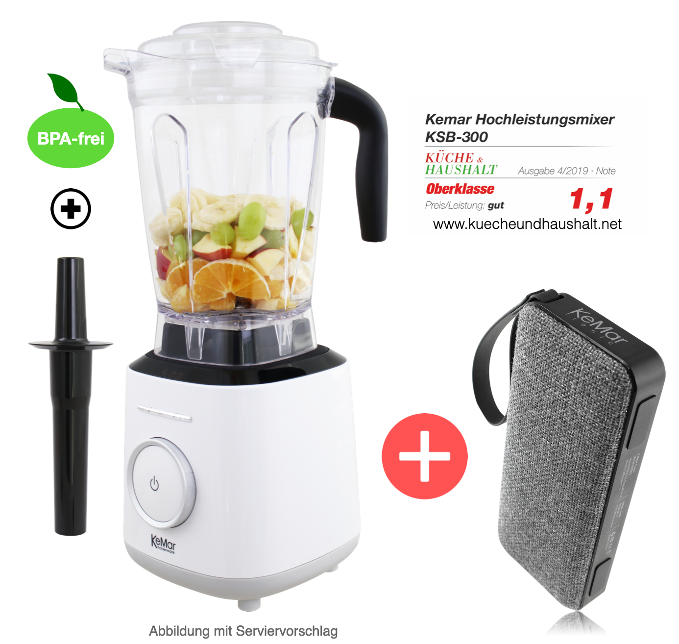 Bei Auswahl und Kauf von ein (1) Stück KeMar Kitchenware Edition zum Aktionspreis (im Drobdown-Menü auswählbar) erhalten Sie gegen einen Aufpreis von EUR 10,00 ein (1) Stück KeMarTronic KBS50 kabelloser wasserfester Bluetooth Lautsprecher.