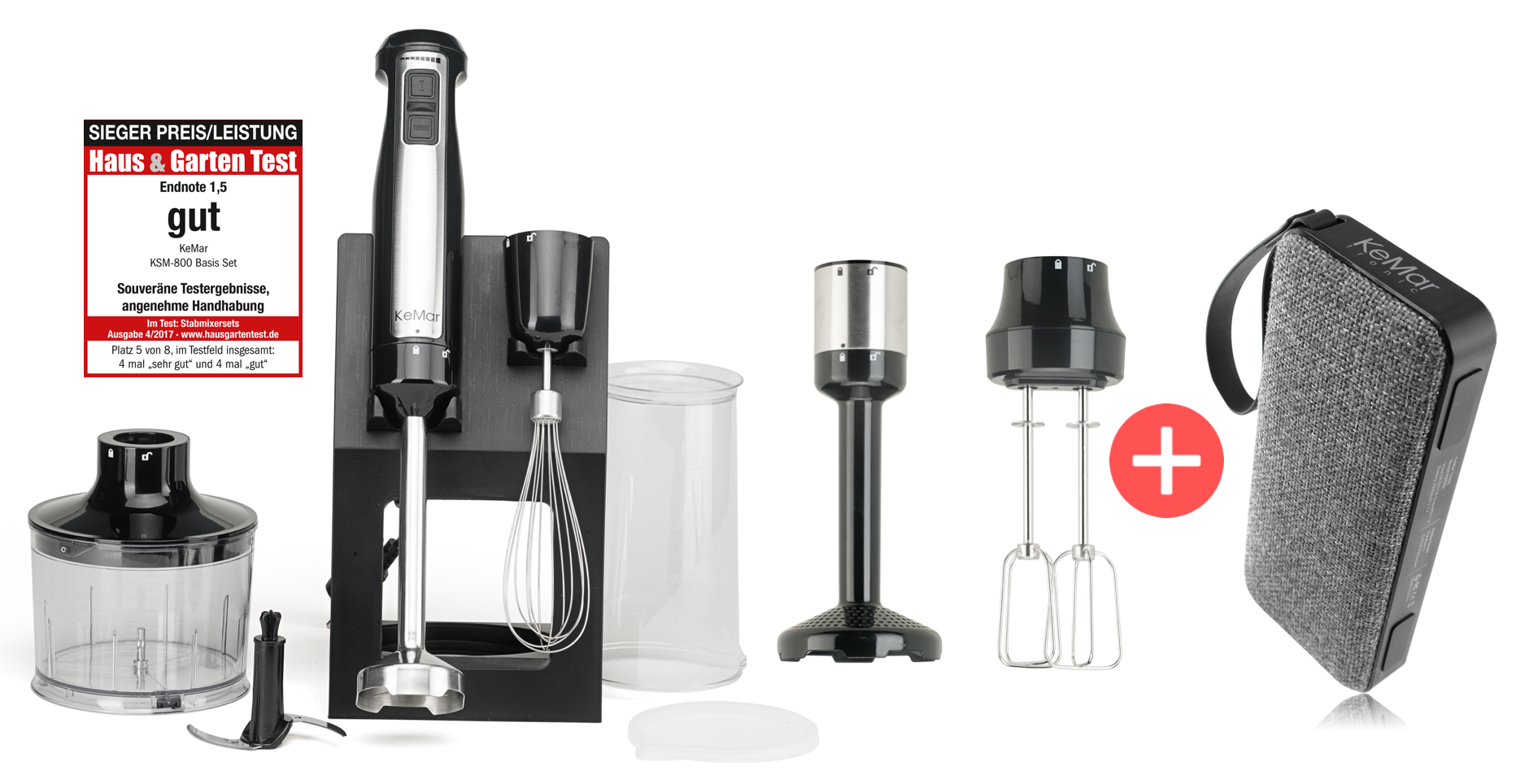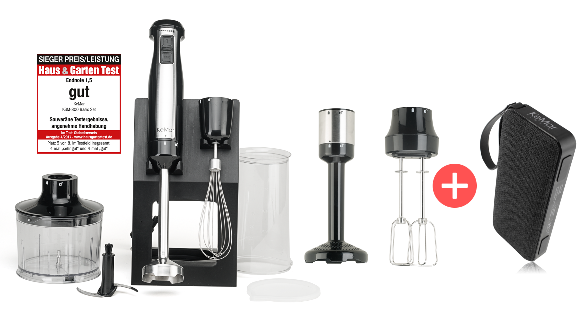 Der KeMar KSM-800 Stabmixer wurde von dem Magazin Haus & Garten in der Kategorie Preis/Leistung zum Testsieger gekürt.