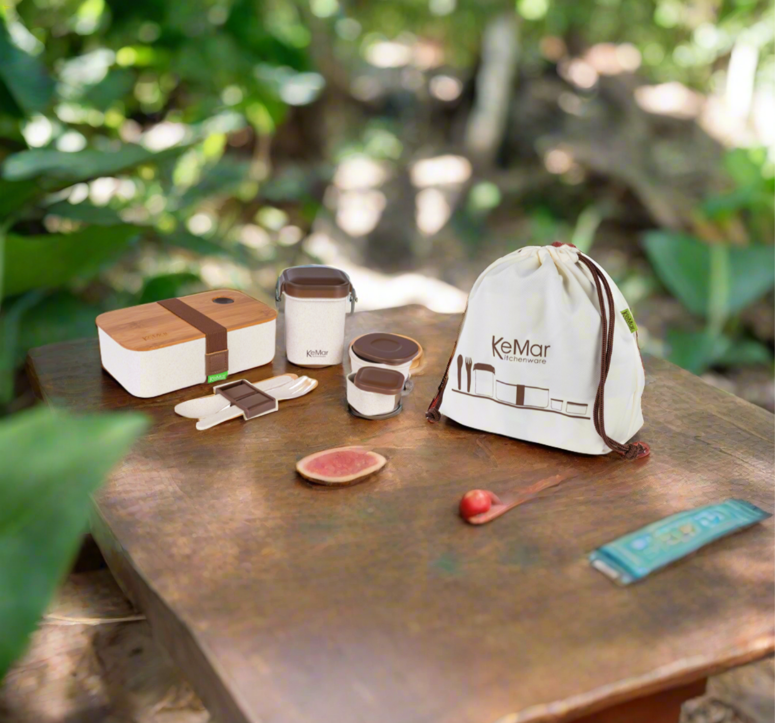 KeMar 6-in-1 Lunchbox Set mit Bambusdeckel – Nachhaltige Bentobox für Meal Prep