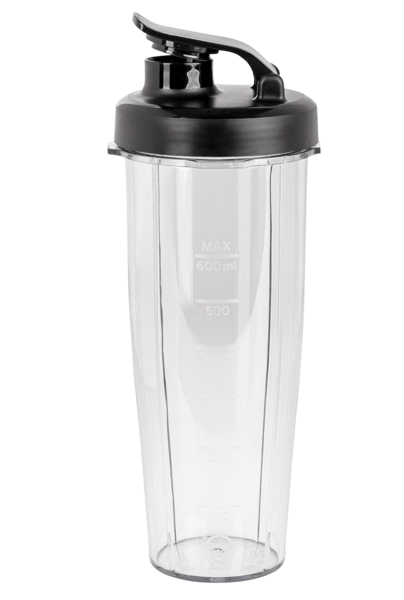Die maximale (MAX) Füllhöhe beträgt 600 ml. Der Behälter eignet sich besonders für Smoothies, Obstsäfte, zum Eis crushen und für Frozen Drinks.