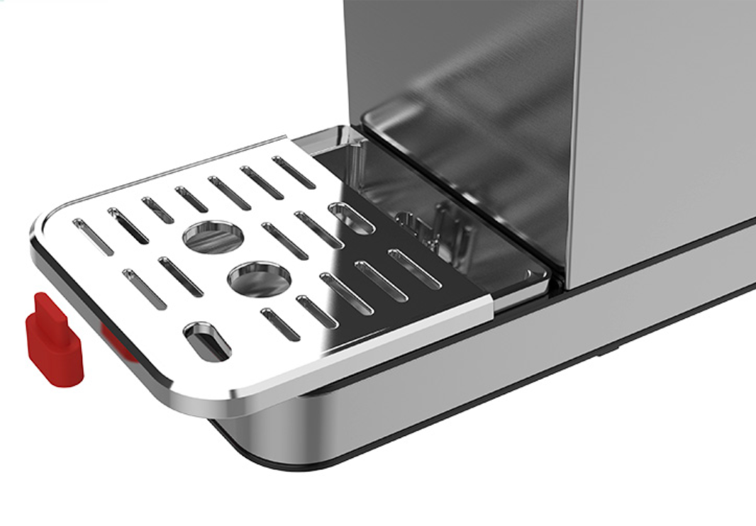 The drip tray can be easily removed and cleaned under running water or in the dishwasher. It fits cups up to 10 cm tall.
