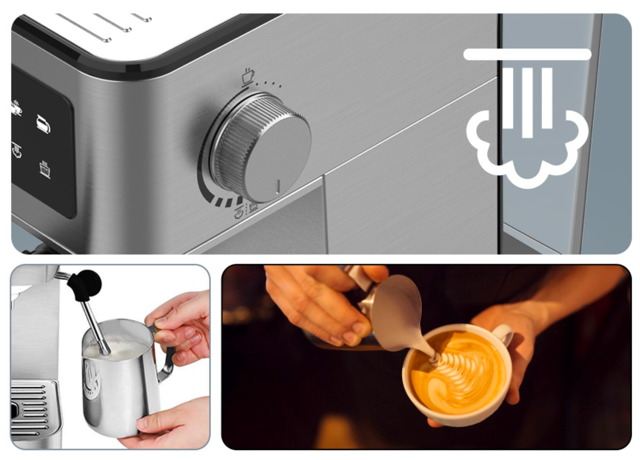 With the powerful 266° stainless steel steam wand, you can quickly prepare silky milk foam . Enjoy silky, velvety microfoam created with powerful steam pressure.