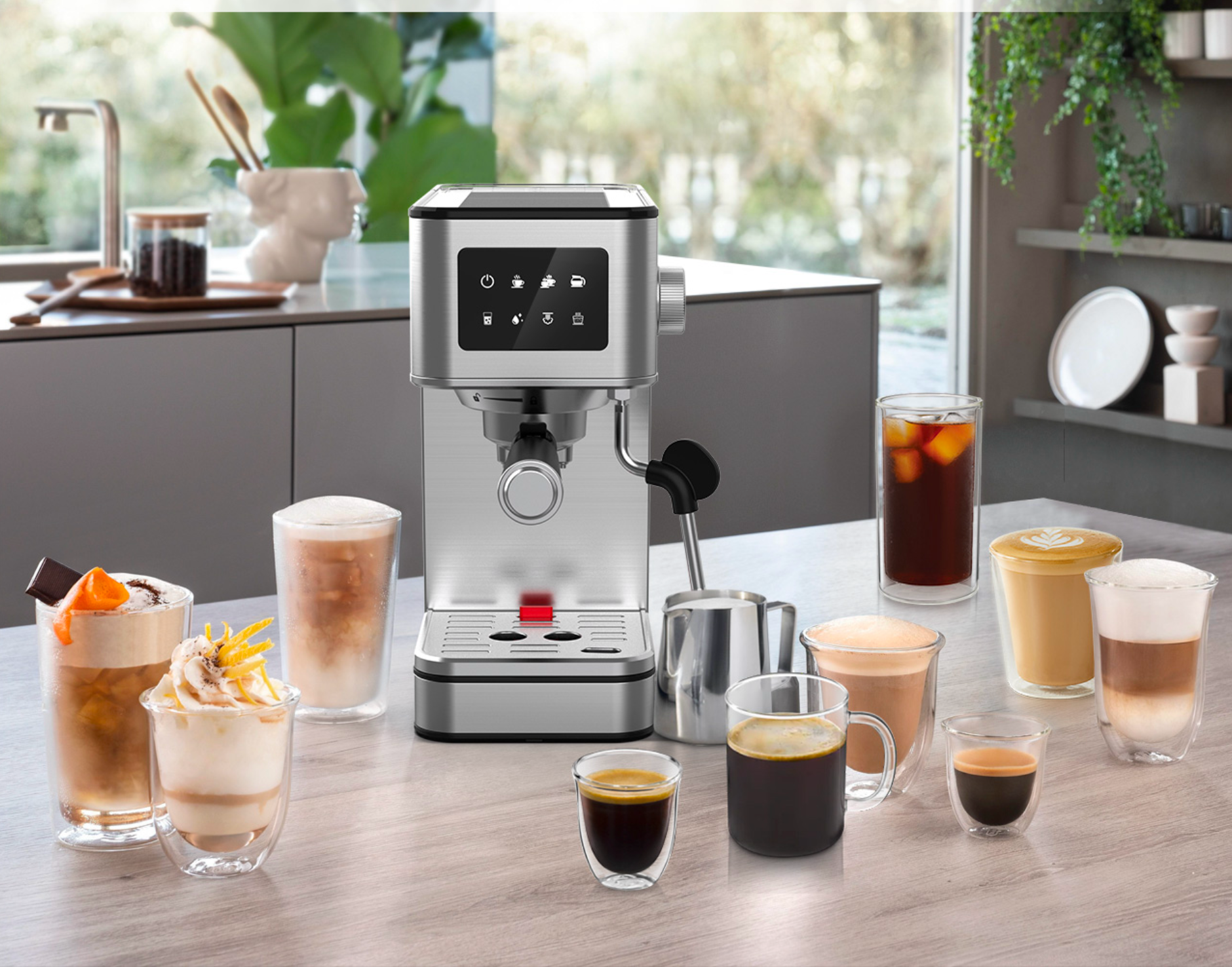 KEM-117 BARISTA DELICIOSO portafilter espresso machine with space-saving design, 20 bar, touch display