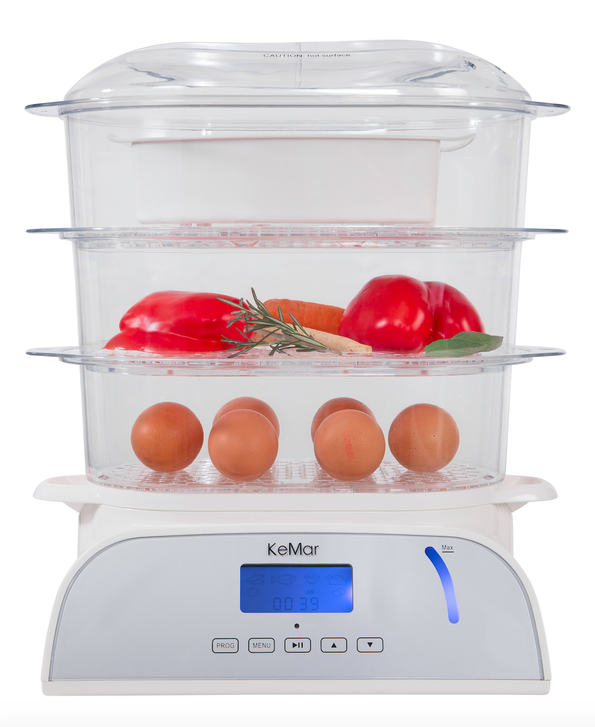 KeMar Kitchenware Steamer | Touch display | 6 automatic programs | Illuminated display | 3 separate steamer baskets | Timer | Rice bowl | Keep warm function