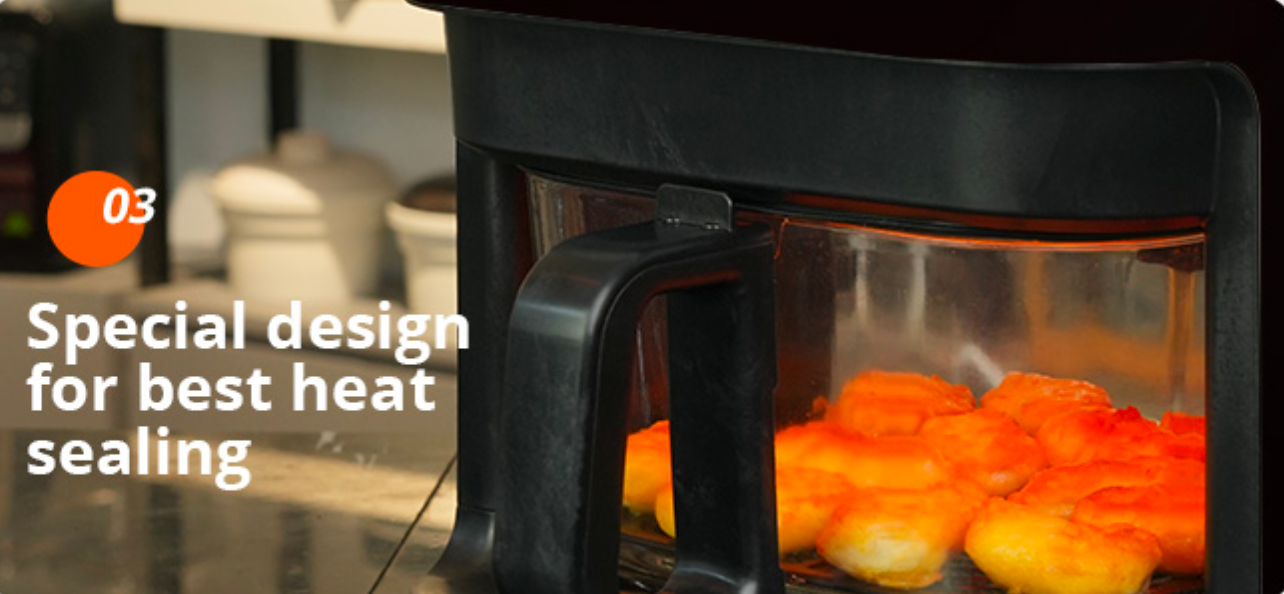 So that you can safely remove the glass basket after frying, this handle is heat-insulated and ergonomically shaped.