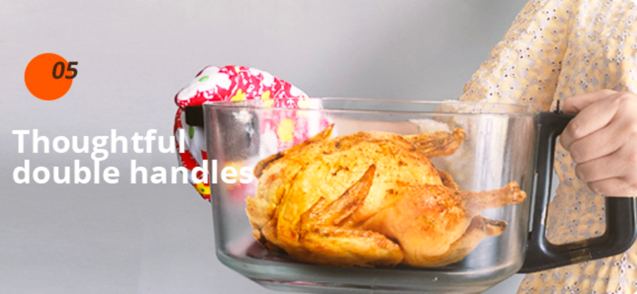 The two handles are designed to allow the glass basket to be safely removed from the appliance. The handles on both sides ensure that your hands don't get burned. It's best to use oven mitts for maximum protection.