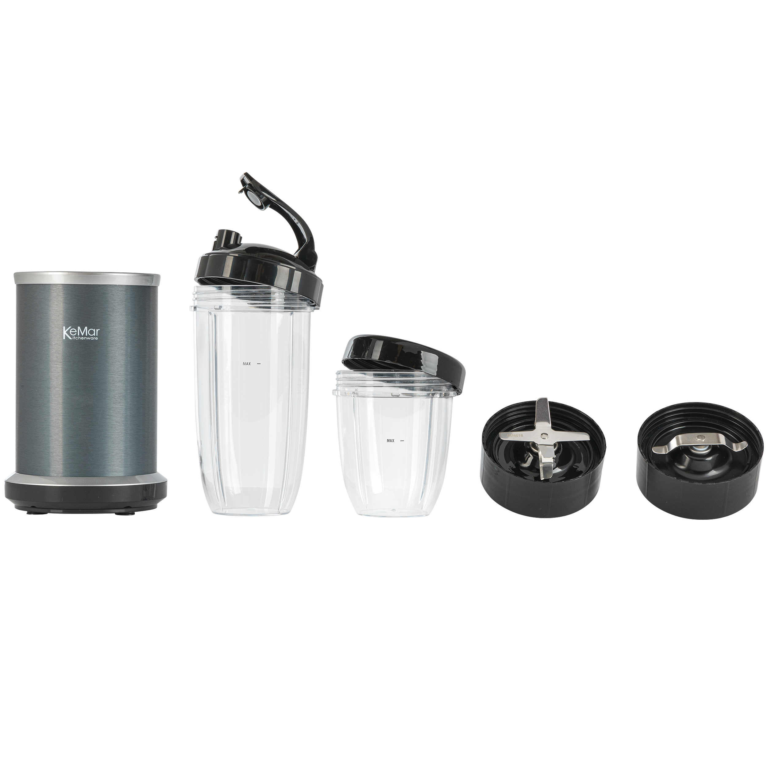 The KeMar KSB-100G blender comes with two blades and two containers. A drinking spout and a lid are also included.