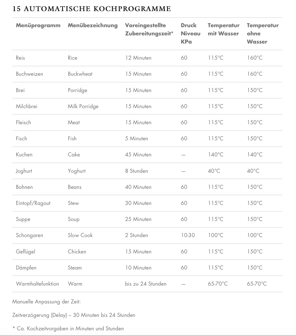 15-in-1 Function : With the KeMar Kitchenware KPC-150, you can prepare all types of rice and porridge (oat, milk, semolina), fry meat and fish , steam food , and then automatically keep it warm. The pressure cooker has 15 automatic programs and a keep-warm/ reheat function.