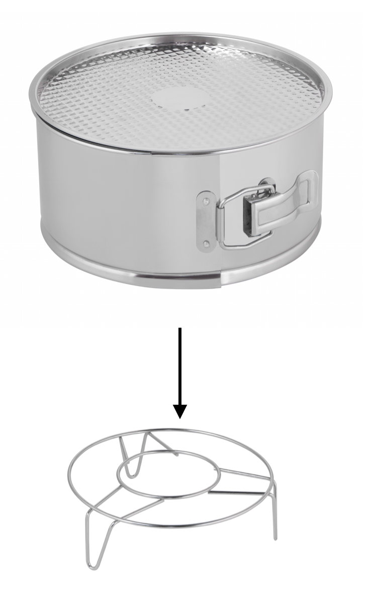 The multifunctional cooker features a 24-hour timer , a keep-warm function , and an LCD display with clear controls. A stainless steel frame and a stainless steel baking pan are included .