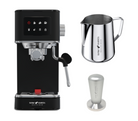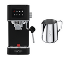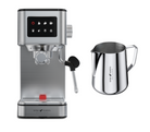 Das Zubehör kann optional mit beispielsweises einem edlem Kaffeestampfer aus Edelstahl, ein 350 ml Edelstahlmilchkännchen sowie ein Siebträger aus Edelstahl anstatt aus Aluminium erweitert werden.