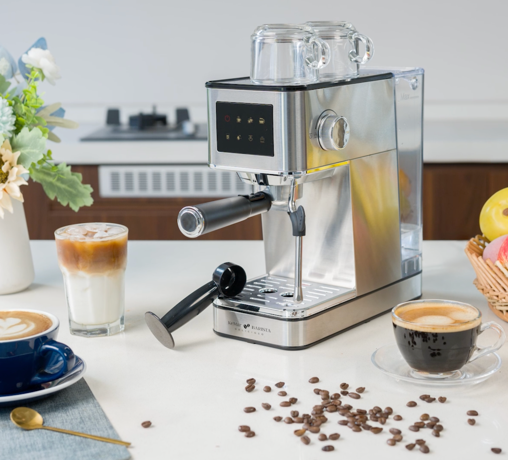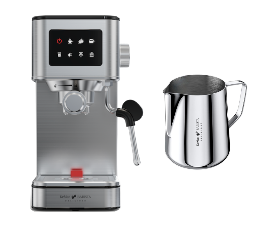 KEM-117 BARISTA DELICIOSO Siebträger Espressomaschine mit platzsparendem Design, 20 Bar, Touchdisplay