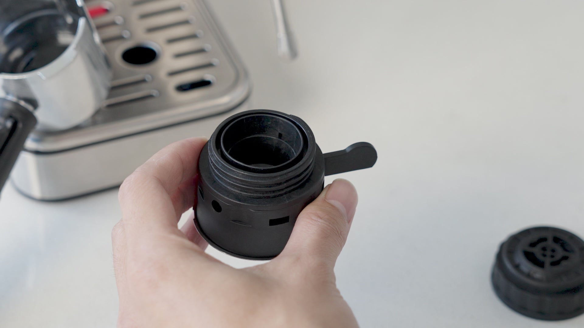 Optional ist ein spezieller Siebträgeraufsatz für Kaffeekapseln im Shop erhältlich. Somit bist Du maximal flexibel bei der Kaffeezubereitung.