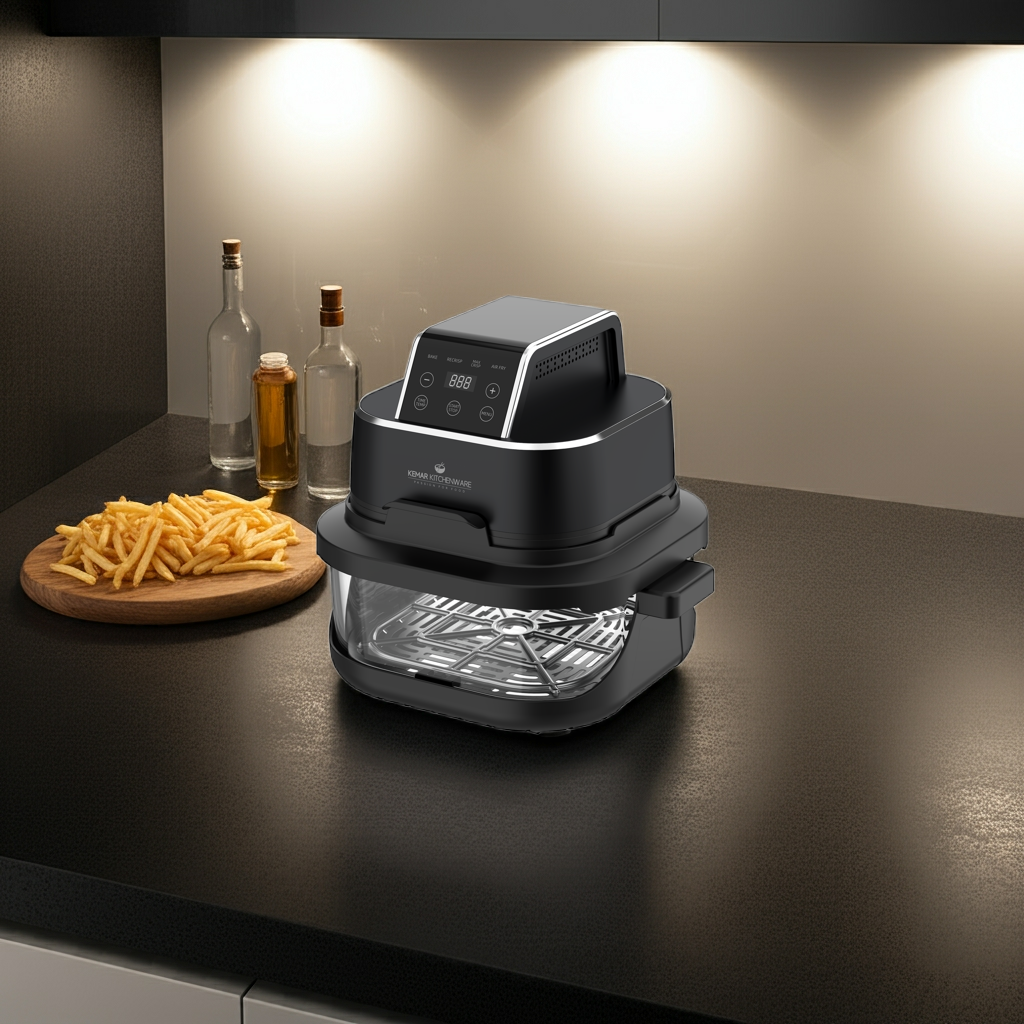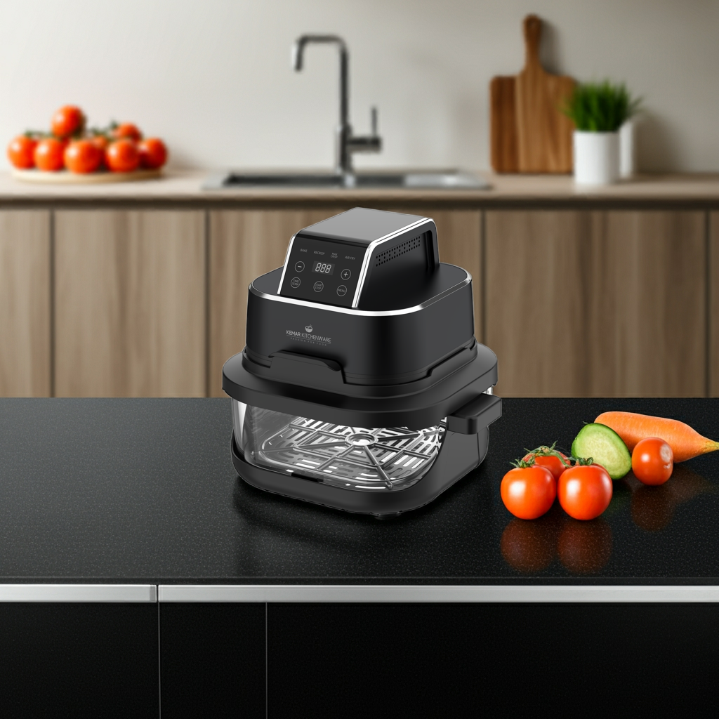 KHF-400 Heißluftfritteuse Glas 4 liter und 1,5 Liter mit Touchdisplay und Frittierkorb aus Glas